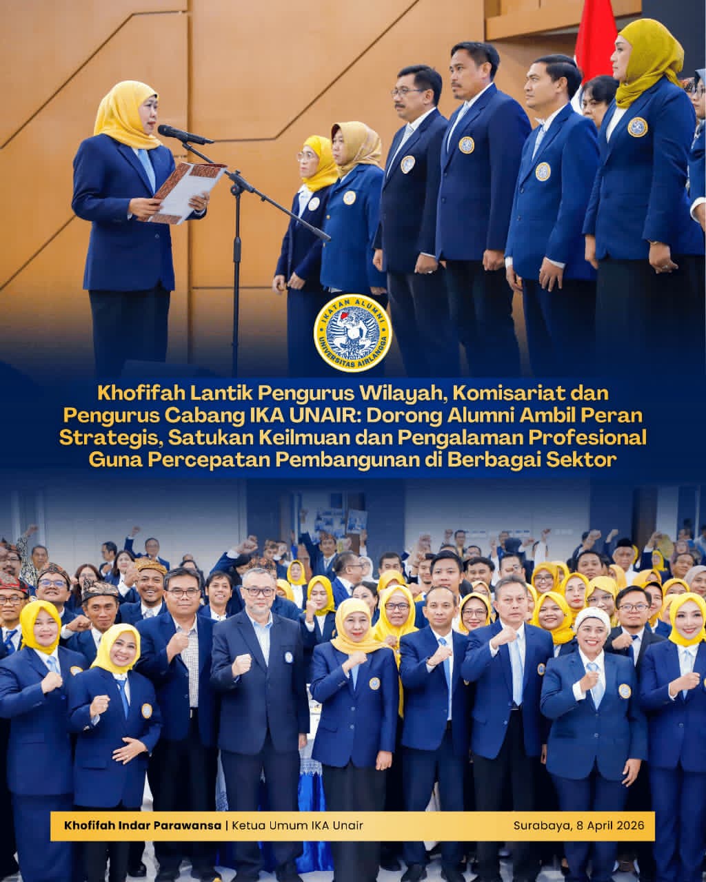 SURABAYA, 9 APRIL 2026 – Ketua Umum PP IKA Universitas Airlangga (UNAIR) yang juga Gubernur Jawa Timur melantik Pengurus Wilayah,…