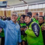 Jakarta - Para pengemudi ojek online (ojol) menyampaikan apresiasi kepada Menteri Koordinator Bidang Pangan atas program penyaluran paket sembako murah…