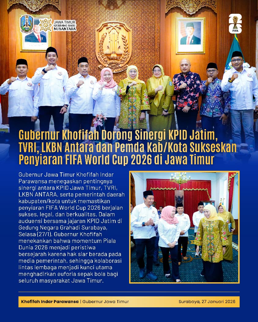 Gubernur Khofifah Dorong Kolaborasi KPID Jatim dan Lembaga Penyiaran demi Sukses Kick Off Piala Dunia 2026 di Jawa Timur