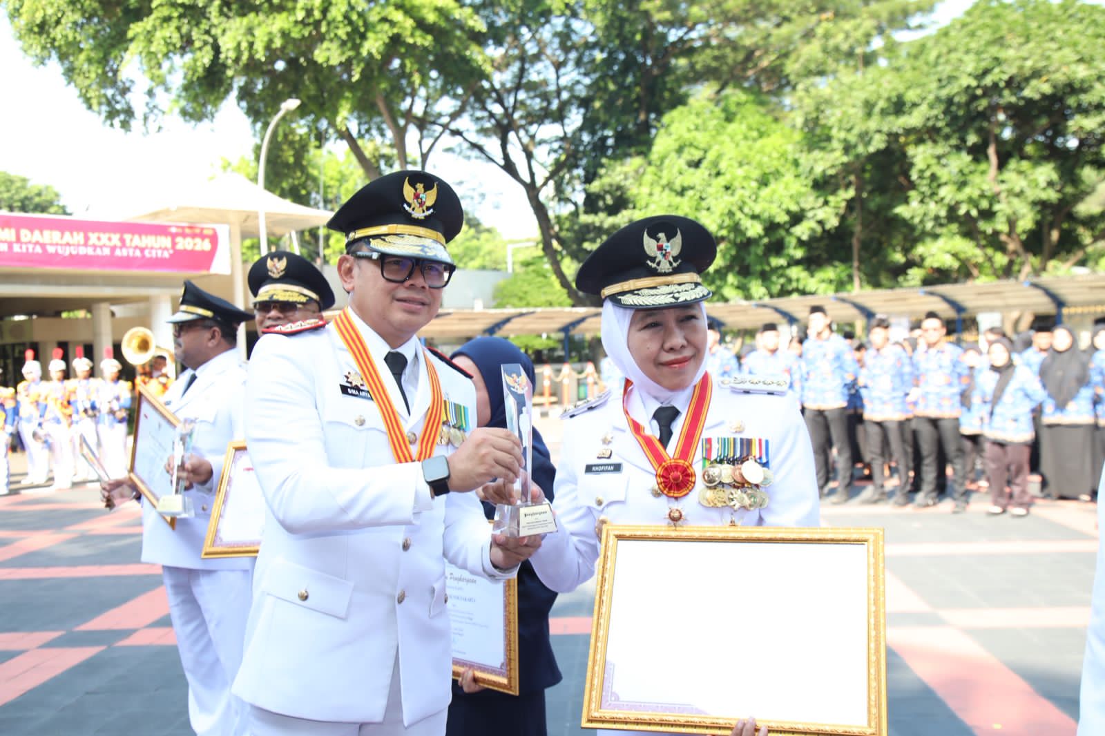 JAKARTA, 27 APRIL 2026 – Gubernur Jawa Timur Khofifah Indar Parawansa menerima penghargaan atas Prestasi Penyelenggaraan Pemerintah Daerah dengan skor 3,4695 dan status kinerja tinggi dari Menteri Dalam Negeri (Mendagri) dalam Peringatan Hari Otonomi Daerah XXX Tahun 2026 di Kantor Kementerian Dalam Negeri RI (Kemendagri), Jakarta, Senin (27/4).