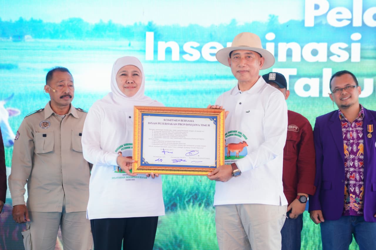 Pemerintah Provinsi Jawa Timur terus memacu peningkatan produktivitas sektor peternakan melalui Gerakan Serentak Pelayanan Inseminasi Buatan (GSPIB) Tahun 2025. Kegiatan yang dipimpin langsung Gubernur Jawa Timur Khofifah Indar Parawansa itu digelar di City Forest, Kecamatan Sumbersari, Kabupaten Jember, Senin (24/11), dan turut diikuti secara serentak oleh kabupaten/kota di seluruh Jatim.