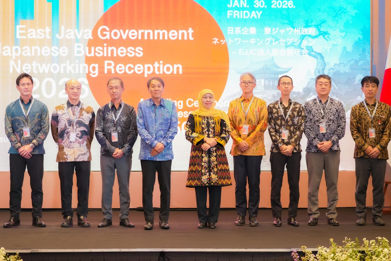 SURABAYA, 31 JANUARI 2026 – Gubernur Jawa Timur Khofifah Indar Parawansa menegaskan komitmen Pemerintah Provinsi Jawa Timur dalam menjaga iklim investasi yang kondusif serta memastikan Penanaman Modal Asing (PMA) Jepang di Jawa Timur tumbuh secara berkualitas, berkelanjutan, dan berdampak langsung bagi masyarakat.