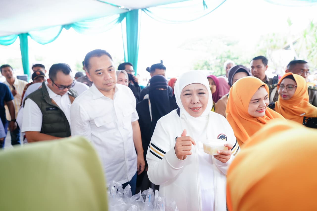 Gubernur Jatim Khofifah Indar Parawansa menegaskan komitmen Pemprov Jatim menggelar pasar murah. Ia ingin sembako murah bisa diakses seluruh warga termasuk di wilayah perbatasan.
