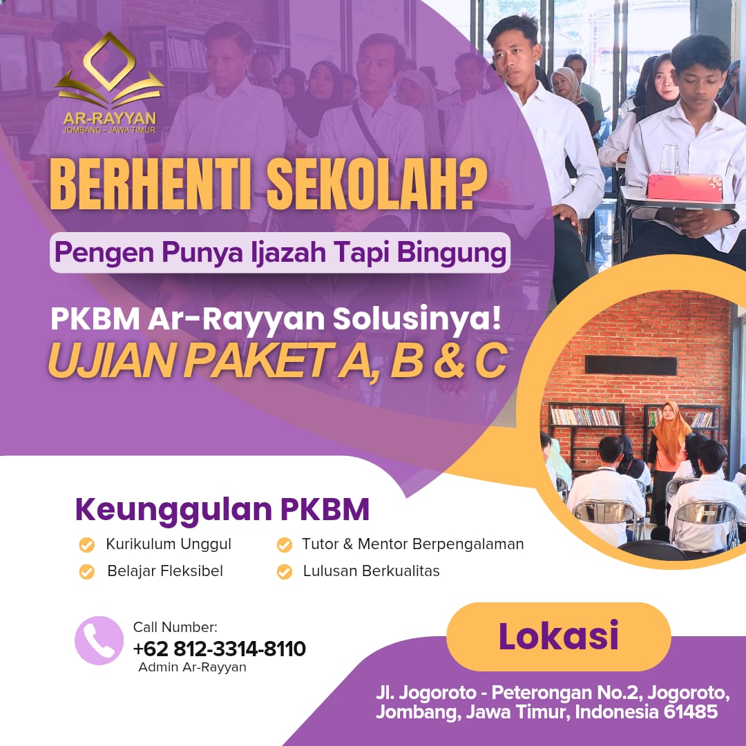 Bersama PKBM Ar-Rayyan Jombang, raih kembali kesempatan belajar dan wujudkan impian memiliki ijazah resmi.