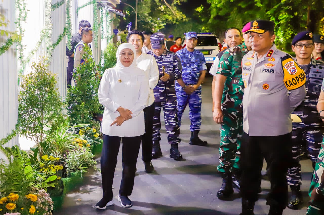 SURABAYA, 1 JANUARI  2026 – Gubernur Jawa Timur Khofifah Indar Parawansa bersama Wakil Gubernur Jawa Timur Emil Elestianto Dardak meninjau langsung kesiapan pengamanan malam pergantian Tahun Baru 2026 di sejumlah titik strategis di Kota Surabaya, Rabu (31/12) malam.